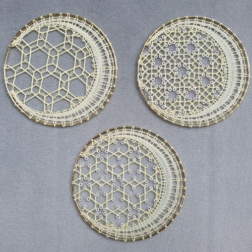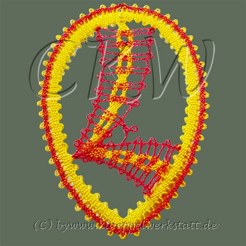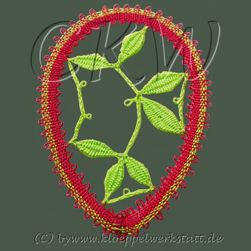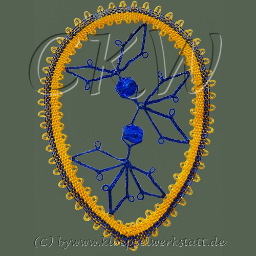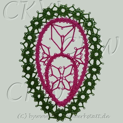 Der Klöppelbrief enthält die Klöppelmuster in drei verschiedenen Größen, das kleine Ei wird mit Fanks Baumwolle 40/2, das mittlere Ei mit Franks Baumwolle 30/3 oder Anchor Garn und das große Ei mit Venus Garn geklöppelt.