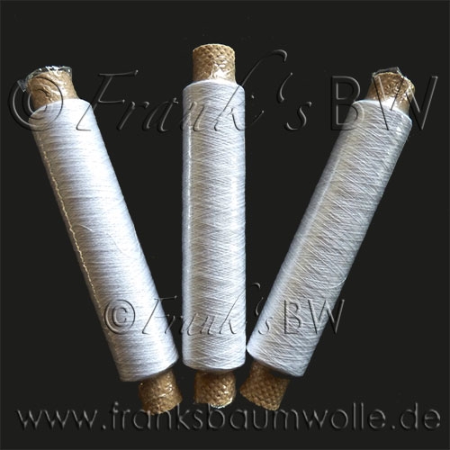 Neues bei Franks Baumwolle- ab sofort, gibt es 500 m Garn pro Rolle - - Farbe Weiß und Creme - - Stärke NeB 30/3 und NeB 40/2 - |