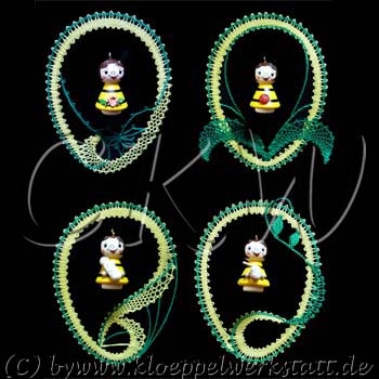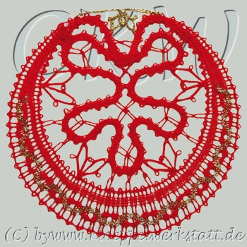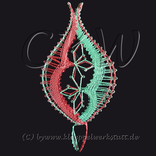 Auf Weihnachten vorausschauend ist der erste Teil der neuen Kollektion der Klöppelmuster für Weihnachten fertig. Anknüpfend an die Klöppelmuster der Osterzeit haben wir Baumkugeln mit Slincas, in die Perlchen eingearbeitet werden, entworfen. Da für den Baumschmuck Glocken und Herzen u.a. Formen nicht fehlen dürfen, werden demnächst weitere Klöppelmuster die Kollektion ergänzen. Die Klöppelmuster wurden alle mit dem neuen Garn "Franks Baumwolle" 30/3 geklöppelt.