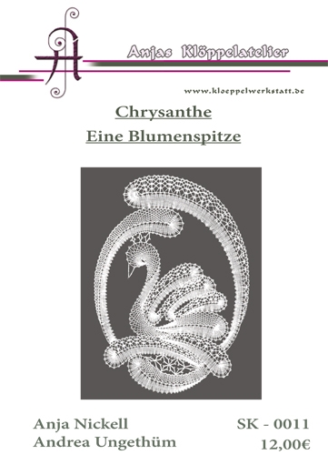Die Chrysanthe-Spitze gehört in die Kategorie der belgischen Blumenspitzen. Sie ist gekennzeichnet von einzelnen gebogenen Bändern, die an die Blütenblätter der Chrysantheme erinnern. Typisch ist für die Bänder das Spinnenmuster, welches in verschiedenen Varianten geklöppelt werden kann.