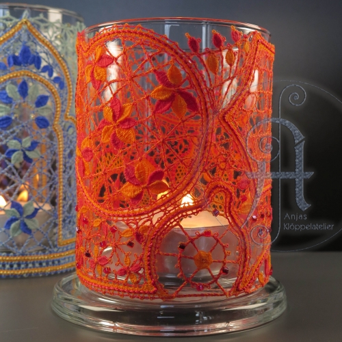 Passend zur Weihnachtszeit habe ich zwei Teelichter entworfen. Sie finden die Klöppelbriefe in der Rubrik Russische Spitze mit den Bezeichnungen NA-RU-0001 bzw. NA-RU-0002.